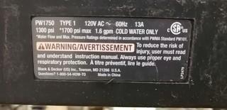 Lot #0527:     Black And Decker 120V 1700psi Pressure Washer
