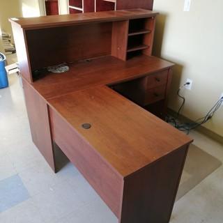 Lot #2786:     L-Shaped Wood Office Desk C/w Hutch
