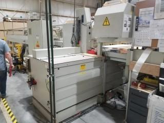 Lot #3035: 2000 Otto Mayer Model PS2Z Beam Saw, Cut Length 4200mm, Saw Blade 450mm Main – 150mm Scoring, Cutting Height – 120mm, Overall Size – 6750mm x 9500mm (Approximate), Weight – 6100kg + 1500kg For Rear Load. S/N 549000 **Selling Offsite - NE Calgary - Unit Will be Disconnected by Owner, Removal is Buyers Responsibility, Must be Removed by Jan. 10, 2020.