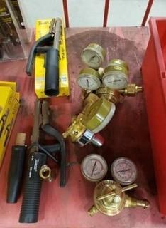 Lot #1482: Contents Of Rack Includes: Regulators, Electrode Holders And Flow Meter