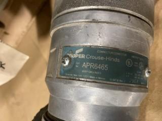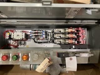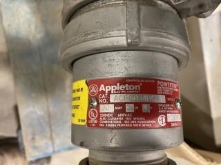 Lot #1224: Eaton Fusible Combination Starter, 25 HP, 600 VAC, 3 PH, Part # 06B308613, Appleton Power Tite Plug Assembly, Male/Female, 4W/3PH, Part # APC6034BC (W-4,3,3)