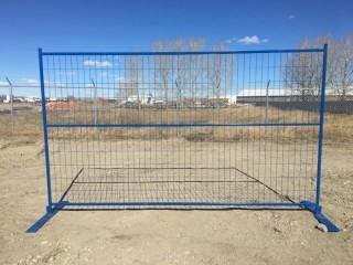 Lot #4092: New - 10'x6' Blue Construction Fence, 40 Panels, 400 Linear Feet with Feet and Tops. 3mm Dia Wire, Electro Galvanized Wire + Powder Coated