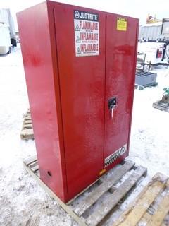 Lot #0344: Justrite 43in X 18in X 65in Flammable Storage Cabinet C/w Contents