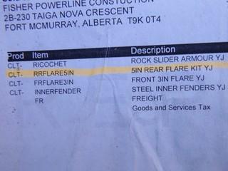 Lot #0431: Poison Spyder TJ-YJ Bolt On Rear Defender Flares For Jeep