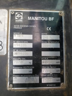 Lot #0365: 2004 Manitou M50-4 Rough Terrain Diesel Forklift C/w 2-Stage Mast, Class 4 Carriage w/ Hydraulic Side Shift, 80" Lead Back Rest (LBR), Pneumatic Tires, 67" Forks, Showing 22346 hrs. S/N 194186