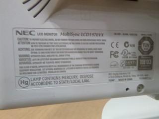 Lot #2018: 16" NEC Multisync LCD Monitor, Adjustable Height, Swivel, Model LCD 1970VX, SN62C02914YA *NOTE: No Power Cord* (W-1-3-1)