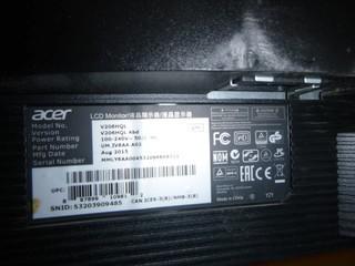 Lot #2414: 18" Acer LCD Monitor, Model V206HCL, S/N 53203909485 (W-2-3-2)