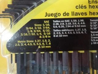 Lot #3551: 25PC Hex Key Set - SAE and Metric (W-5-1-2)