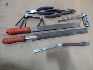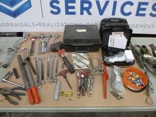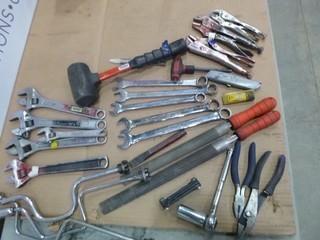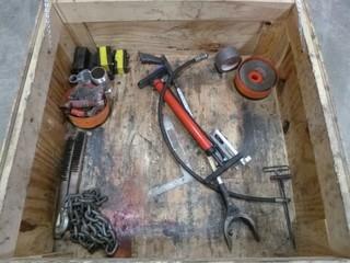 Lot #1291: (3) Optimax 365 UV-A-LED Inspection Light, 33" x 34" Wooden Crate, XE LED-80 UV-R2-365Q, Inspection Light, (4) 12" Crescent Wrenches, (2) 7/8" Combination Wrench, 6200lb Sling (2" x 4') - Certification Not Valid, 3100lb Sling (1" x 3') Certification Not valid, Variety of Misc. Shop Tools (W-R,2)