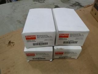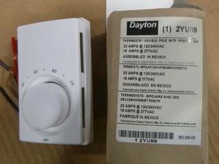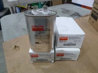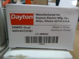 Lot #2324: (3) Thermostat Double Pole w/ Positive off PN# 2YU89, (5) Thermacell Holster w/ Clip, (2) Dayton Electric Motors Type PN# 3RCX3A/ PSCRPM/1550 HP15 V115 HZ 60PH, (4) Capacitors Dayton PN# 2MDZ4, (1) Dayton Mounting Bracket 5" Diameter 3 Rings, (1) Transformer 480/24 PN# R622HHGJ, (18) 3/4" Wire Brush, (2) Boxes of Grinding Wheels (W-4-4-3)