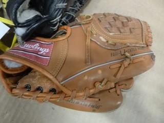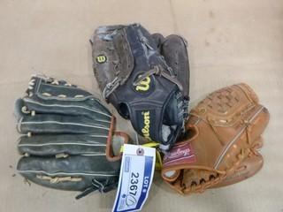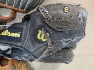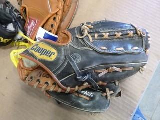 Lot #2367: Assortment of Baseball Gloves, (1) 12" Cooper, (1) 12" Wilson, (1) 10" Rawlings, (2) Baseballs (W-W)