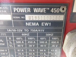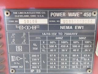 Lot #1318: Lincoln Power Wave 450 Welder, 3 Phase, S/N U1951103150, C/w Synergic 7 Wire Feeder, S/N U1951012224 (W-R,2)
