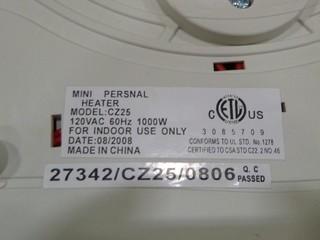 Lot #3125: Mini Personal Heater (W-3-3-2)