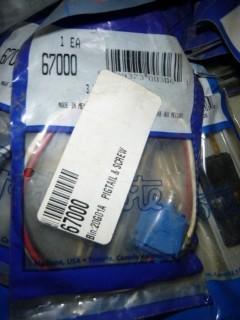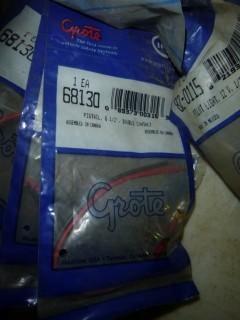 Lot #0694: (3) Pilot Light 12V, 1/2" L, 5/16" Hole, 82-0115, (7) Seal Beam Sockets, 2 Prong, 84-1007, (3) Grote Harness, 67005, (7) Support Brackets, Pt 43850, (3) 3 Wire Plug In Pigtail, Pt 67000, (12) Grote Harness, Pt 68080, (6) Pig Tail 6 1/2" Double Contact, Pt 68130