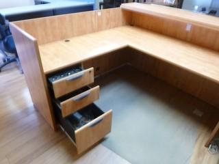 Lot #0602B: 73" x 73" x 41" Corner Desk w/ Storage and 3.5" x 22" x 29" Side Cabinet