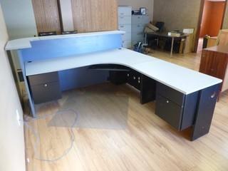 Lot #0602A: 85" x 96" x 44" Corner Desk w/ Key Board Slide Out Tray and Storage