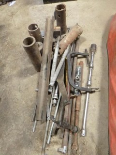 Lot #0136: Fifth Wheel Adjusting Tool, Bushing Puller, Slack Puller, Wheel Nut Sockets, 2 3/4" Flex Bars