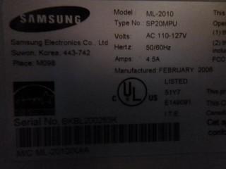 Lot #0500N: Samsung Mono Laser Printer ML-2010 c/w 2 Toner Cartridges
