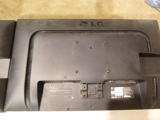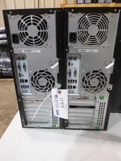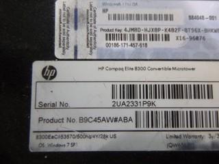 Lot #1143: (2) LG Flatron 24" E2411 Monitors, C/w (2) HP Compaq Elite 8000 / 8300 Convertible Micro Towers, (2) HP Keyboards *Note No Cords or Stands* Desk not included