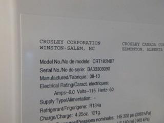 Lot #0979: Crosley Fridge, Model CRT182NW7 SN BA33308090