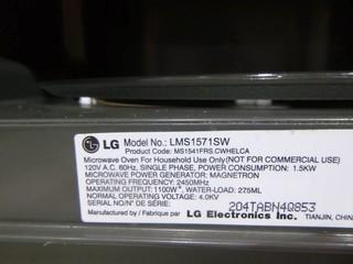 Lot #1125: LG Microwave, Model LMS15715W, 1100 Watts