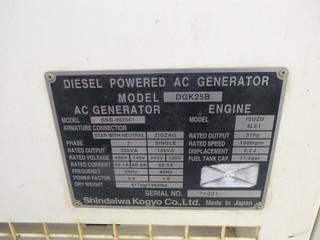 Lot #2070: Shindaiwa Kwiet Power Diesel Generator, Model DGK25B, C/w Isuzu 4LE1 31 HP Engine, Showing 3,941 Hours, 3 Phase, 480 Volt, 625 Amp, S/N 71031-000371
