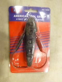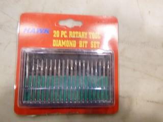Lot #2912: (1) 4 Way Voltage Tester, (1)Brass Tire Chuck, (1) 20PC Rotary Tool Diamond Bit Set, (1) 5 in 1 Pocket Screw Driver Set, (1) Pocket Flashlight, (1) 7PC 6" Brad Point Drill Bit Set, (1) Air Oil & Water Separator (A1)