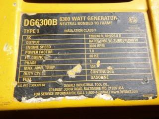 Lot #1256: (1) DeWalt Generator, Model DG6300B, 120/240V, Single Phase, Gas, S/N DW08060012202 (WR3-2)