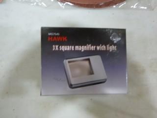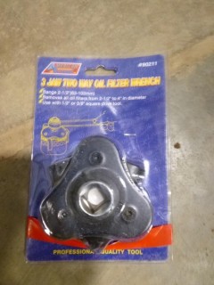 Lot #3042: (1) New 3X Square Magnifier w/ Light, (1) New 3 Jaw Two Way Oil Filter Wrench, (1) New Package Of 7" Clamping Paper 5 Pc, (1) New Package Of Wire Wheel Brush Set 5 Pc (A2)