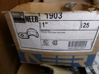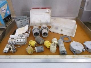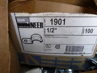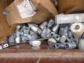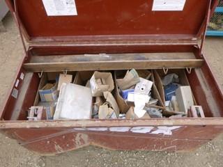 Lot #1197: 48" 24" JoBox, C/w Qty of 1/2" Tech Connectors, Qty of Various Sized Conduct and Cable Hardware, (2) Universal Thermostat Guard, Qty of Various Amp Plug Ends (WR4-11)