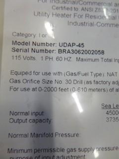 Lot #2700: Reznor Nortec Global HVAC Natural Gas Heater, Forced Air, 45,000 BTU, 26" x 27" x 12" (E4-3-3)