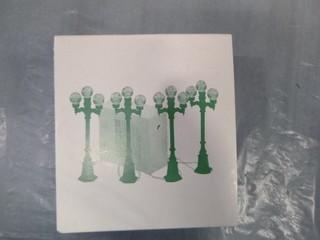 Lot #2637: Village Accessories, (2) Curved Section of Stream, (3) Straight Sections of Stream, (1) set of 4 Boulevard Lamp Posts Ornamental Collectables (E5-1-1)