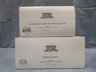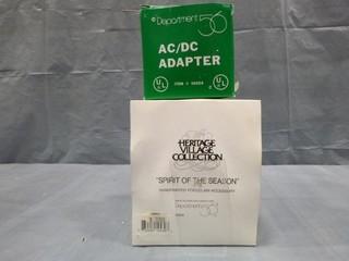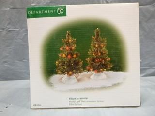 Lot #2639: Village Accessories, " A Peaceful Glow on Christmas Eve", "Skating Party", " Spirit of the Season" Department 56 Frosted Light Trees, AC/DC Adapter Ornamental Collectables (E5-1-1)