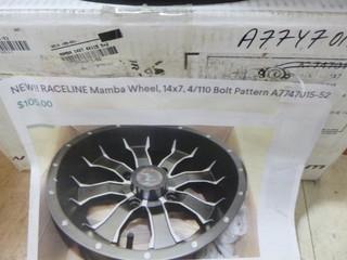 Lot #0773B: (1) Raceline Mamba ATV Rim 14x7, 4/110 Bolt Pattern, +10mm Off Set, Part A7747011-52
