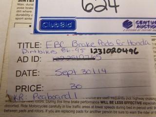 Lot #0624: (1) Set EBC Disc Brake Pads, Part FA125R