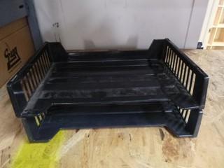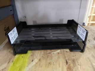 Lot #0077A: (14) Standard Stackable Desk Trays w/ 13 Legal Size Stackable Deck Trays, 3 Wooden Clip Boards