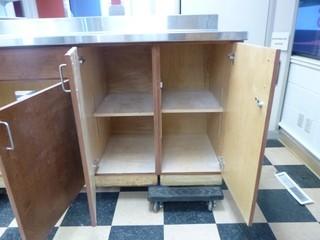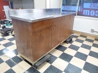 Lot #0054: Barely Used Heavy Duty Kitchen Grade Stainless Steel Countertop with solid wood core 79" W x 26" D, C/w Under Cabinets *Note Counter easily Removable* (Dollys not Included)