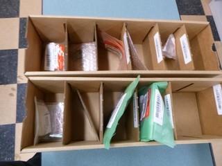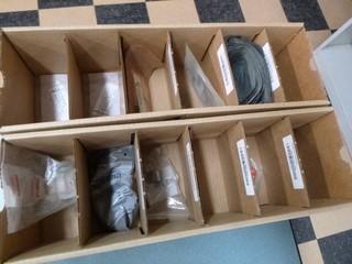All the boxes are labelled with the correct part numbers for what is in the boxes. Anything scribbled out is an empty spot in the box. Quantities are now on the boxes in the auction. Parts were all added up in the lots to give an approximate value of all the correct quantities.