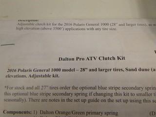 Lot #0871: Previously Installed Clutch Kit For 20 16 Polaris General 1000, Part DAL-DUVP10G-U