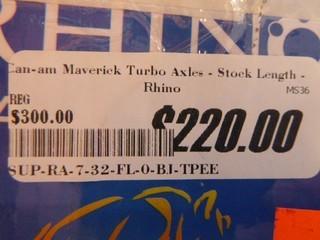 Lot #0723: Rhino Brand CV Axle For Can Am Maverick, Part SUP-RA-7-32-FL-O-BJ-TPEE