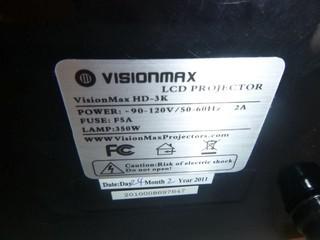 Lot #1560: Vision Max LCD HD-3K 350 W Projector & DA-LITE/CLASS-RITE Pulldown Screen Approx. 88"