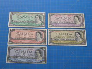 Lot #7156: 1954 Canadian $1, $2, $5, $10, $20 Bills