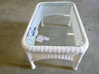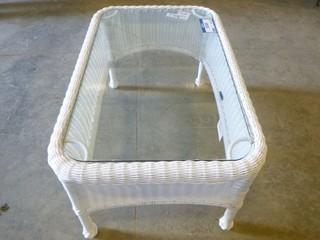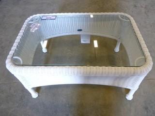 Lot #5249: 32" x 21" PVC Wicker Glass Top Patio Coffee Table (EWO)