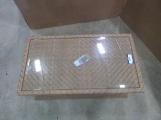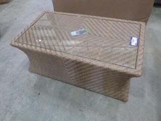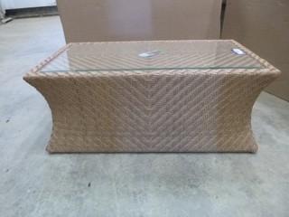 Lot #5244: 44" x 24" PVC Wicker Patio Coffee Table w/ Glass Top (WR-3)