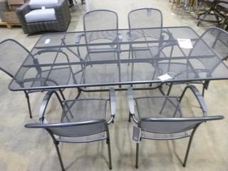 Lot #5319: 42" x 75" Patio Table w/ 6 Patio Chairs (EWO)