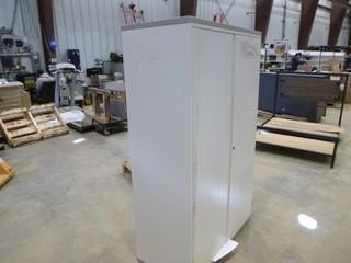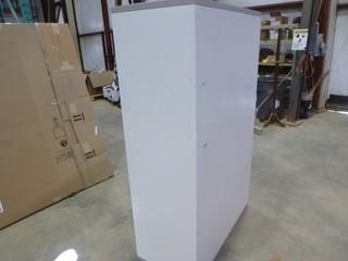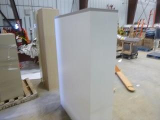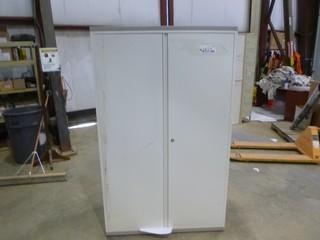 Lot #5823: L-Shaped Desk, 2-Door Storage Cabinet and 5-Shelf Open Bookcase *NOTE: Desk Damaged* (WR-3-20)