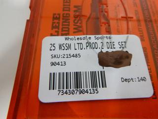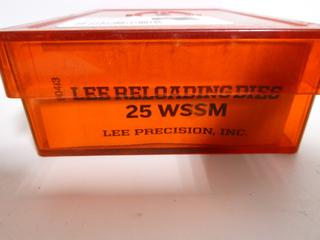 Lot #8360: Lee Reloading Dies 35 Remington, w/ (1 Lee Factory Reloading Die 25 WSSM, (1) Lee Factory Reloading Die 6.5 Rem Mag