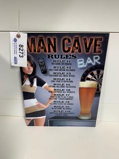 Lot #8273: Man Cave Rules Tin Sign