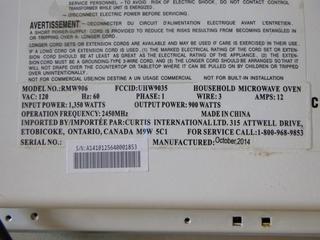 Lot #4166:     RCA Microwave, Model # RMW906, S/N # A1410125640001853 (F-1)