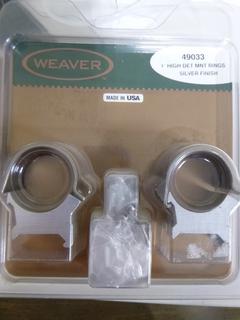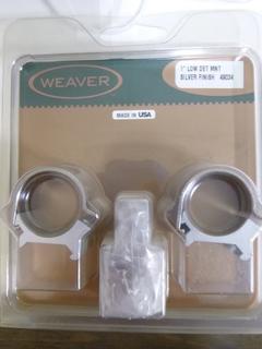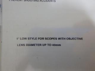 Lot #8291: Weaver Scope Mounts, (1) 1" High Mount (OBJ Lens 42mm thru 44mm), (1) 1" Low Mount (OBJ Lens up to 40mm)